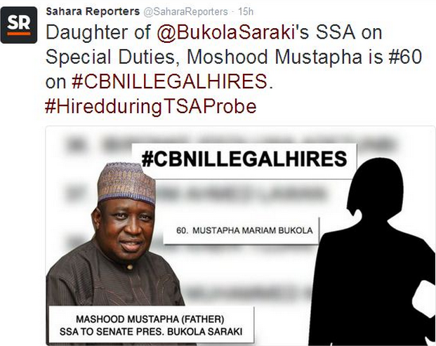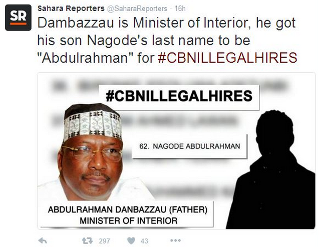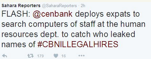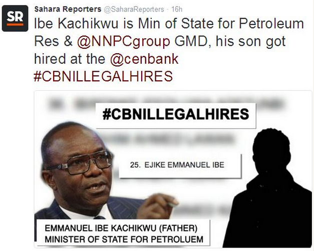 Home / News From Nigeria / Breaking News / Sahara Reporters Unveil Names Of Beneficiaries Of CBN Illegal Recrutiment+photos