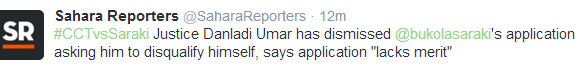 The Chairman of the Code of Conduct Tribunal, Umar Danladi, has rejected the application by Senate President Bukola Saraki asking that he, Danladi, disqualifies himself from directing his case at the tribunal. The CCT chairman in his ruling toward the beginning of today, said Saraki’s application needed legitimacy.