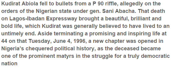 Her mom, Kudirat Abiola, another popular democracy advocate, was killed a couple of years later in the streets of Lagos.