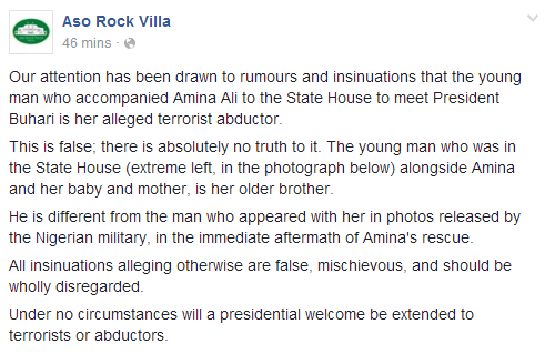 As indicated by the administration, the man who followed Amina Nkeki to the state house is her senior sibling and not the Boko Haram predator who got her pregnant. Additionally, Amina is the only surviving female in a family of 13. She is not by any means the only child of her family as was before guessed.