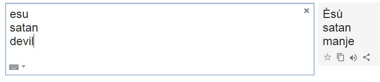 Congratulations to all traditionalist in the world. Those who fought for what they believe in. Those who walk for Esu. Those who said Esu is not Satan. Now it has been corrected by google translator that Esu is not Satan.