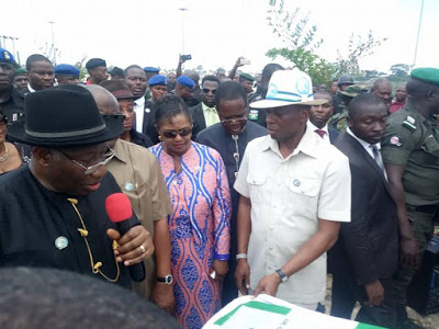 Ex-President Goodluck Jonathan today commissioned some road projects constructed by the state governor, Nyesom Wike’s administration. See more photos of him bellow.