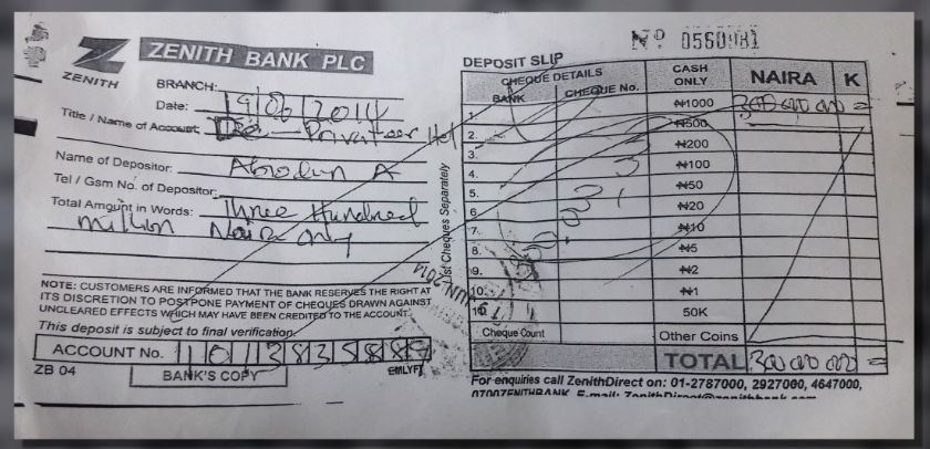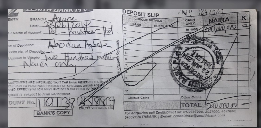 Bank tellers shows how Gov. Ayo Fayose got monies laundered through his Zenit bank accounts from Agbele. source: Sahara reporters. The fear of Sahara reporters is the beginning of political wisdom.