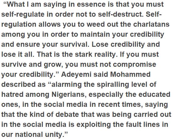 Well, the old tricks by the old fox Which one is self regulations??? Clamping on medium of expression is a flagrant violation of freedom of expression….I don’t think the West would welcome such idea and still this administration has a hidden agenda like the secret trial of Dasuki.
