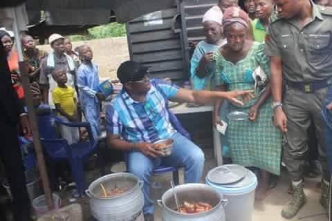 Home / News From Nigeria / Breaking News / Gov. Fayose stops his convoy to dish beans from Iya Elewa pot