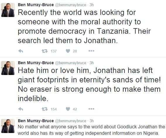 Senator Ben Murray-bruce head to twitter to express his views about Ex-president of Nigeria, Goodluck Ebele Jonathan. See what he said bellow.