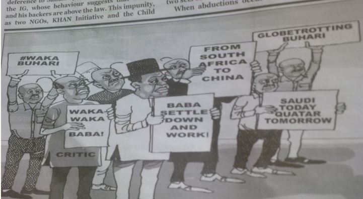 Home / News From Nigeria / Breaking News / Hilarious Cartoon By Punch Newspaper On Pres Buhari’s Constant Travelling