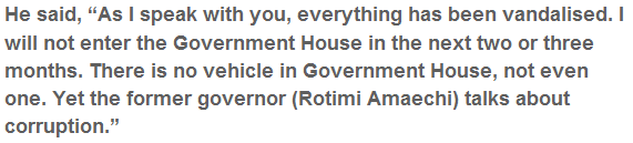 Wike clarified that he found himself able to watch the missing things amid an assessment of the Government House after he was confirmed as the state’s chief executive.