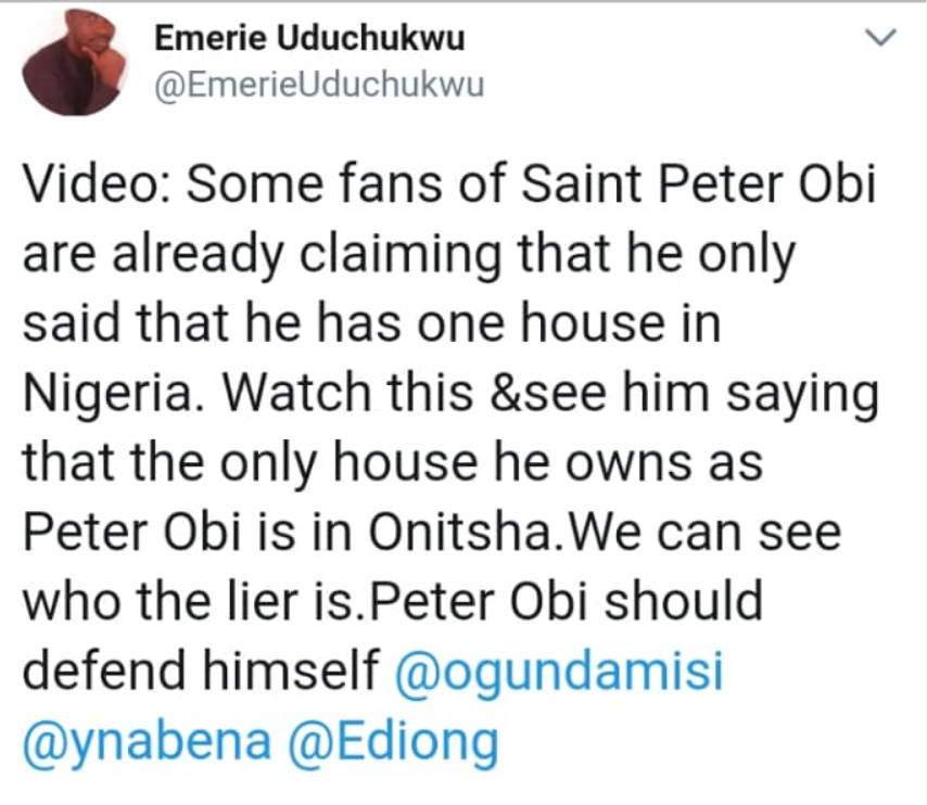 Meanwhile, here is Dr. Peter Obi talking about owning one house in Onitsha in an interview.