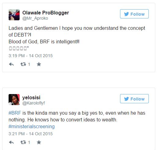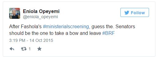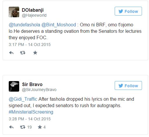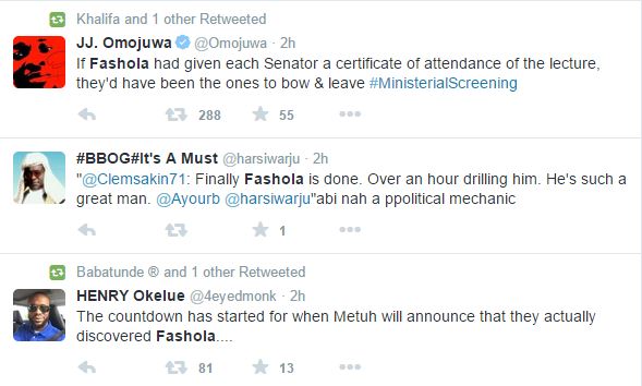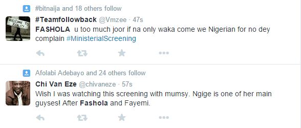 Nigerians head to twitter to react to former governor of lagos state, Babatune Raji Fashola’s screening/speech.