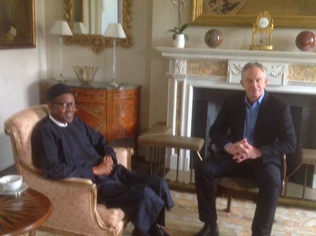 Here are More photos of Muhammadu Buhari @thisisbuhari, Former British PM Tony Blair and Senator Ibikunle Amosun in London today