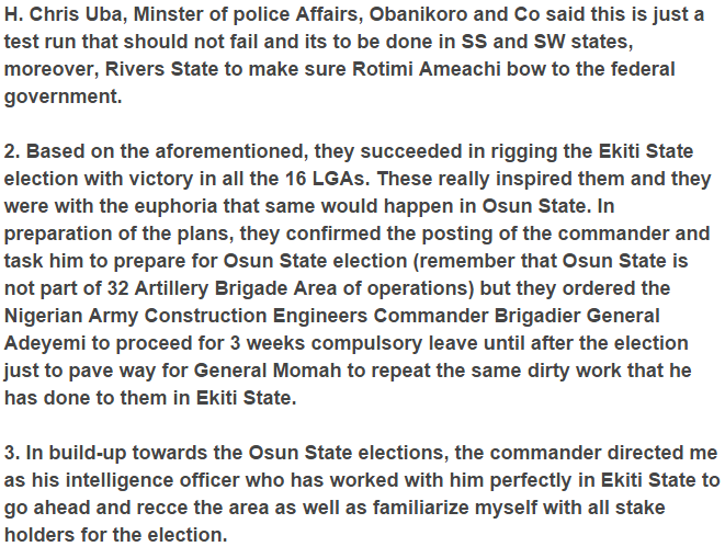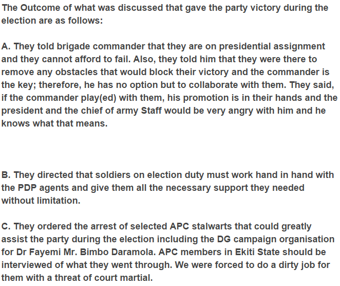 A Nigerian Army Captain, who released the sound proof of how some top authorities of the Federal Government and the Peoples Democratic Party, PDP, utilized the Nigerian Army and other security organizations to rig the governorship election in Ekiti and Osun States a year ago, has stood up about the matter.