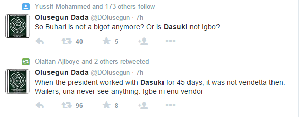 Nigerians sha. If you no arrest thieves na problem, if you do na problem. if you arrest from other tribe na Bigot. Dasuki Sh*t