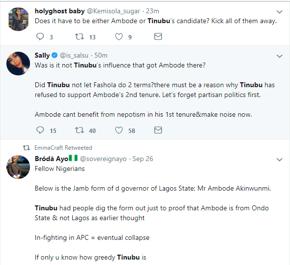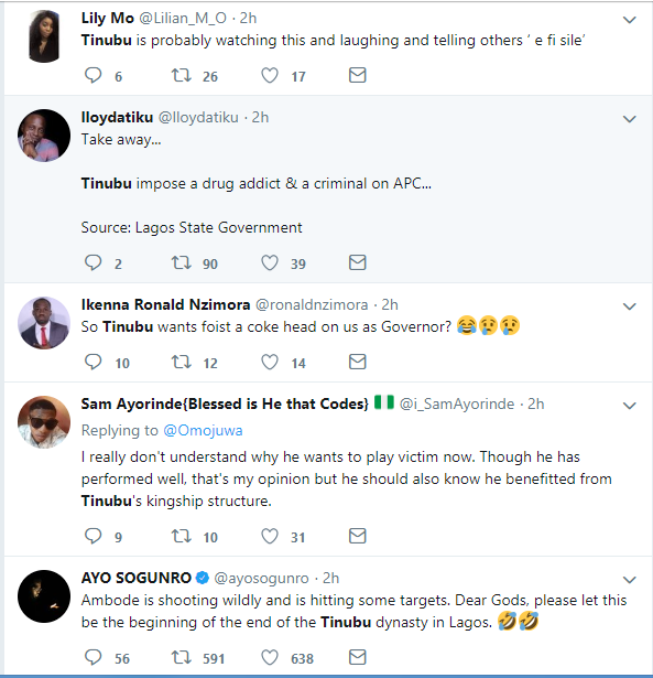 Nigerians have taken to social media to react following allegations made by governor Akin Ambode against another aspirant in the All Progressives Congress (APC) in the state, Babajide Sanwo-Olu, whom he claimed he’s unfit to govern Lagos state.