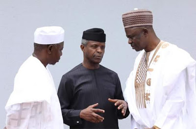 Acting President Yemi Osinbajo pictured swearing-in two new ministers Stephen Ocheni from Kogi State and Suleiman Hassan from Gombe State during the Federal Executive Council (FEC) Meeting at the Council Chamber State House, Abuja. Wed. 26 July 2017.