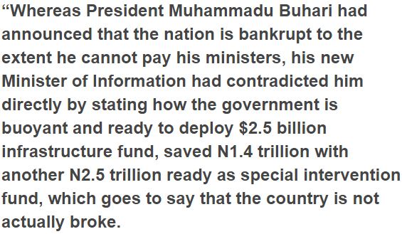 It included that with the introduction of the ministers, the All Progressives Congress (APC) administration ought to completely resolve the issues on the real position of the country’s economy and the direction therein.