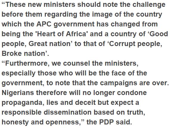 The Peoples Democratic Party (PDP) has said the highly anticipated task of portfolios to the new ministers did not rouse certainty that there is any change being presented in the system.
