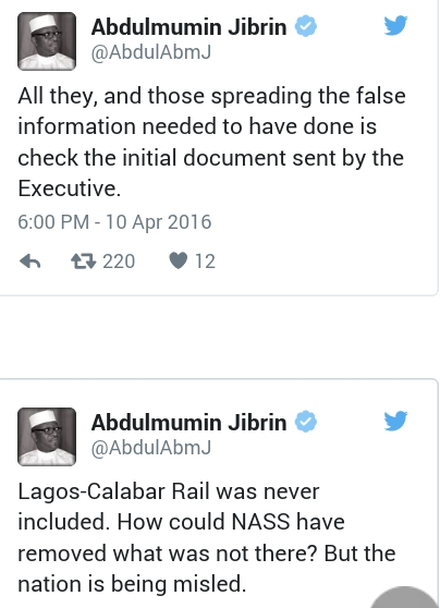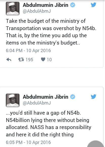 Excerpt Of Tweets By The Chairman House of Representatives Committee on Appropriation, Abdulmumin Jibrin via his @AbdulAbmJ on the Budget.