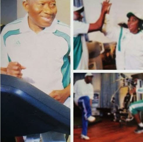 Reno Omokri imparted these pics showing Pres. Jonathan & the First Lady at the gym to keep fit.