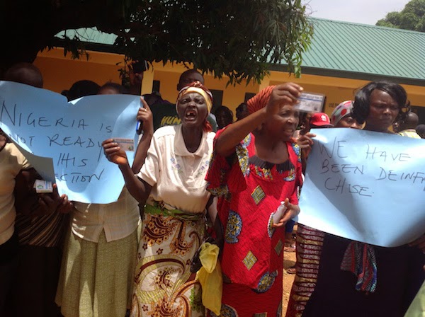 Jude, Jos: Women protesting non-issuance of PVC in Jang’s ward, Ladura Du in Jos South LGA.