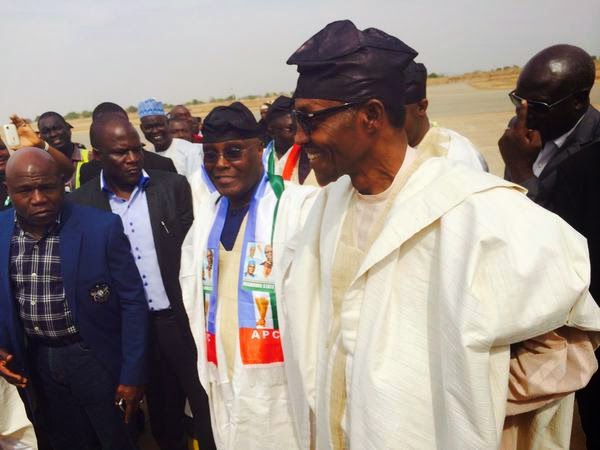 Nigeria’s previous Vice President and Turaki Adamawa, Atiku Abubakar, personally welcomed Buhari in Yola. Atiku likewise got a happy welcome from the swarm.