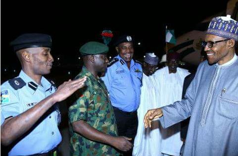 Photos: President Buhari returns home From London