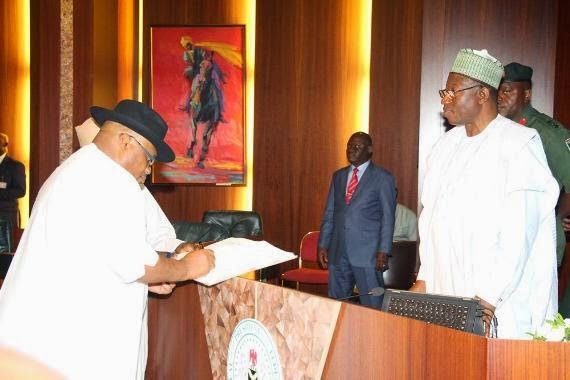 Eight new minsters were confirmed today by president Jonathan at the presidential manor.