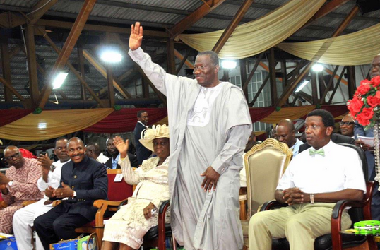 President Jonathan was at the at the Holy Ghost Service of the Redeemed Church, on Friday.