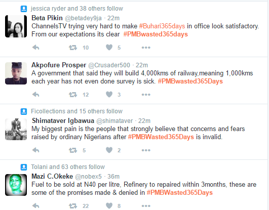 The hashtag #PMBwasted365days is trending on twitter in Nigeria at this moment with more than 5000 tweets. See more tweets after the page break…