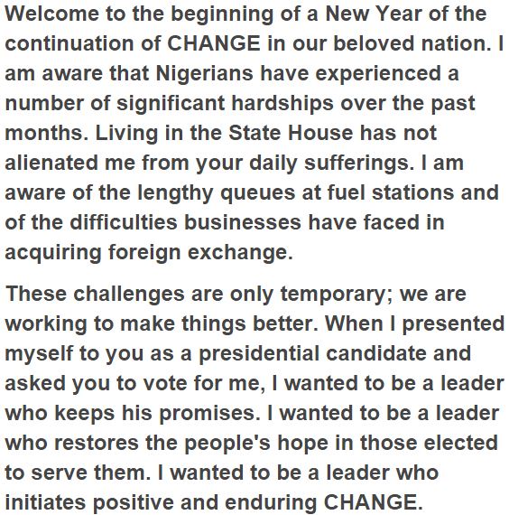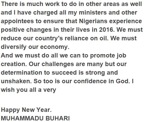 President Buhari’s New year message to Nigerians