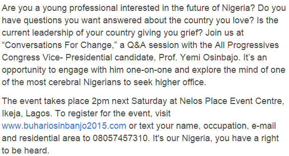 Home / Politics / Prof. Osinbajo set to hold “Conversations For Change” with young professionals