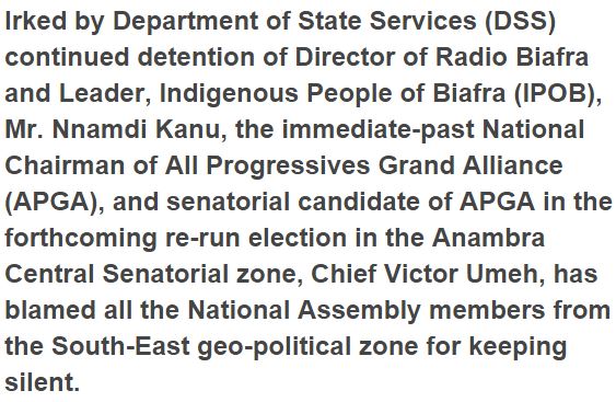 Home / News From Nigeria / Breaking News / Re Kanu: Ex-APGA Chair Blasts S-East NASS Members For Keeping Mum (My 0.1k Opinion)