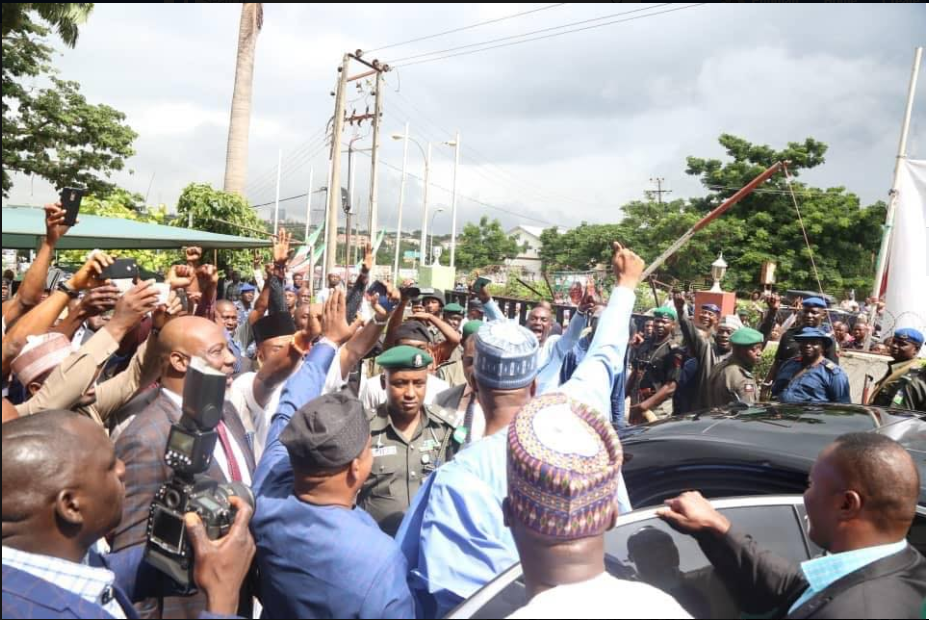 The National Secretariat of the Peoples Democratic Party, PDP, Wada plaza, Abuja, into the Complex, was agog this afternoon as the President of the Senate, Bukola Saraki made a triumphant entry into the complex.