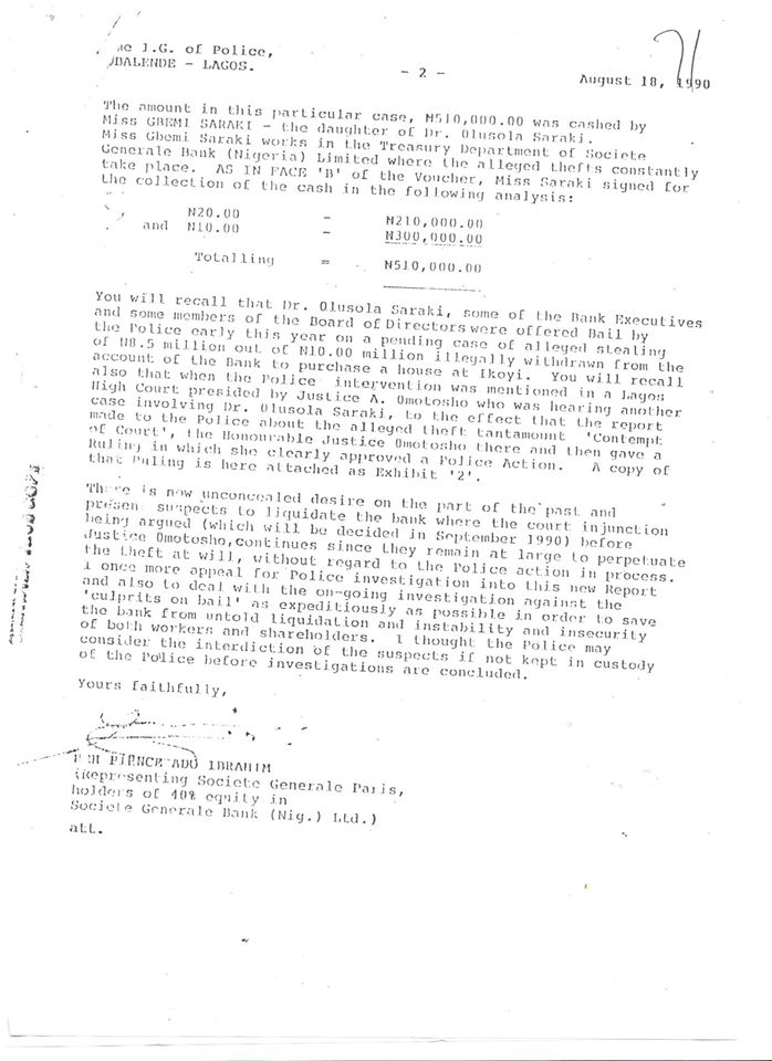 Some police officers found out that Bukola Saraki, who is nigeria’s Senate President, was a petty thief as of 1990, he was actually charged with theft of N510,000 at Societe Generale Bank of Nigeria. The officers warned in areport that Saraki was about to liquidate the bank by looting it but no one listened until his siblings, cronies and relatives eventually did.
