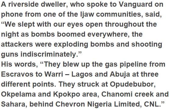 WARRI-SUSPECTED ex-activists, Thursday night, exploded a gas pipeline in Warri South-West Local Government Area, Delta State passing on gas from Escravos–Warri-Lagos-Abuja, property of the Nigeria Gas Company, NGC, in what is accepted to be a resumption of new dangers in the Niger Delta area.