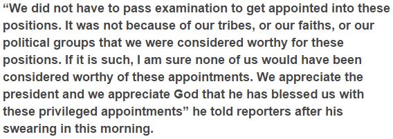 Recently designated secretary to the Government of the Federation SGF, Babachir Lawal, says in spite of hypotheses, his appointment alongside 5 different representatives by President Buhari a week ago, was not in light of tribal affiliations or religious conviction.