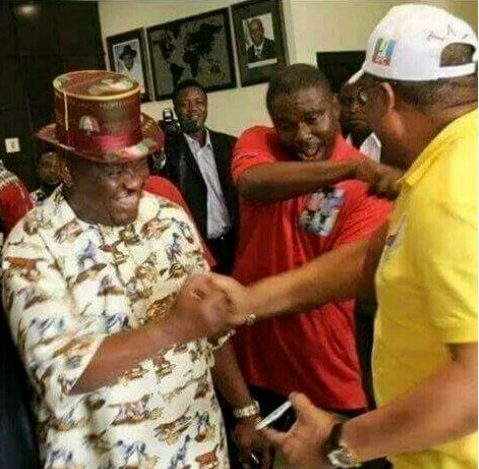 Please what sort of handshake is this?… In the mean time is that not Dakuku and another APC chieftain wearing white cap?