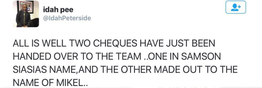 Japanese billionaire fulfills his promise, presents $390k (about ₦140m) cheques to Mikel ($190k), Siasia ($200k)