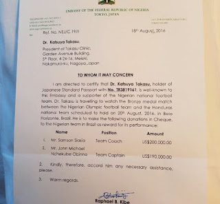 Japanese plastic surgeon and very rich person Katsuya Takasu is a major fan of Nigerian players, he had prior declared his yearning to give a reward of $30,000 to every Nigerian player if they win gold at the Rio 2016 men’s Olympic football competition in Brazil. The extremely rich person likewise guaranteed the group $20,000 for silver and $10,000 for bronze in the wake of catching wind of their money related hardships.