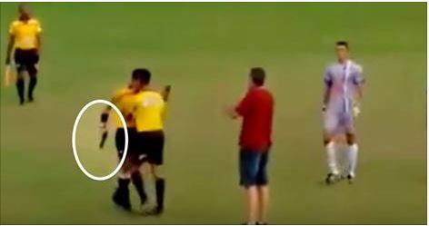 The incident happened at the weekend during a regional league match in Brumadinho near Belo Horizonte, Brazil’s sixth largest city and the capital of the state of Minais Gerais.