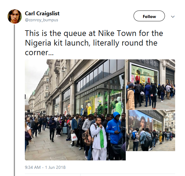 Consequently of the demand, fans flocked to Nike Town opposite Oxford Circus tube station in hope of getting a jersey of their own.