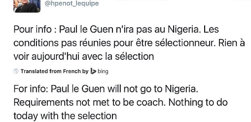 Newly announced Super Eagles’ Technical Adviser, Paul Le Guen, rejects the job due to unmet requirements.