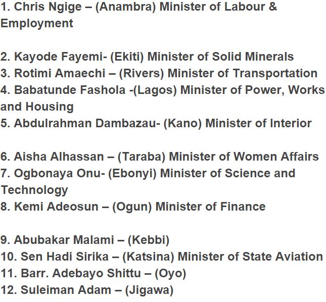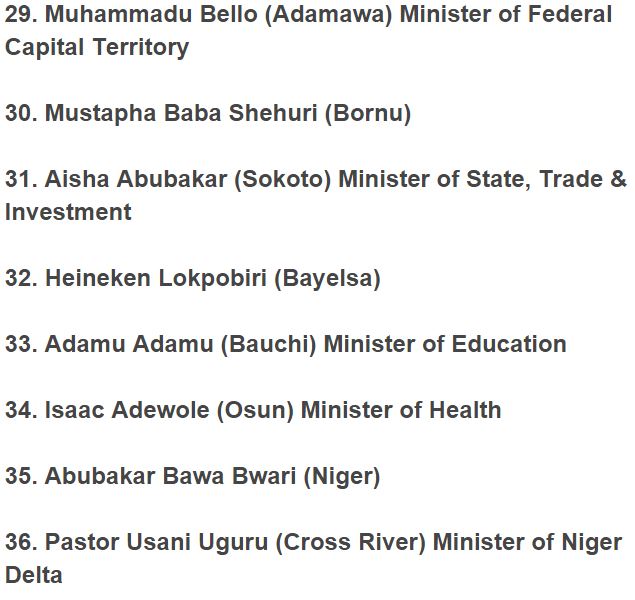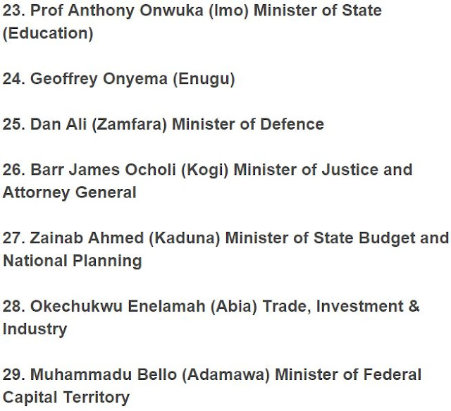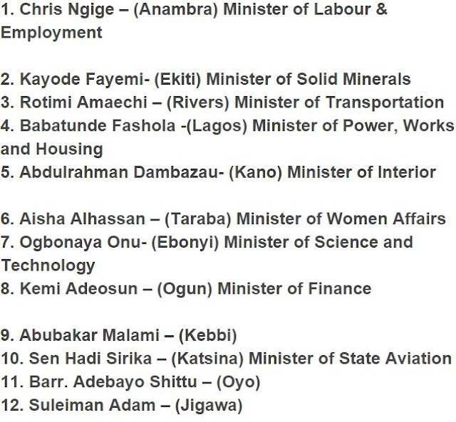 President Muhammadu Buhari has at last announced the long waited arrangement of ministers, who were confirmed on Wednesday, at the Presidential Villa, Abuja.